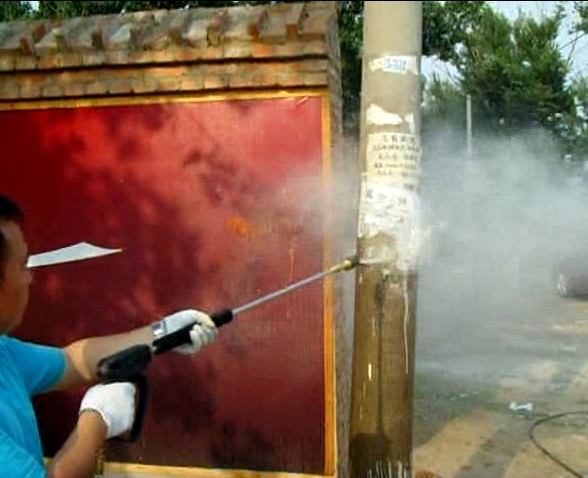 最近,您走在各大城市的大街小巷,常常会看到这样一种景象:一组组身穿环卫工作服的工作人员,手执一米多长高压水枪,对着一张张张贴在电线杆、户外墙面上的非法小广告轻轻一点,几秒种功夫这些极碍市容的小广告遍瞬时灰飞烟灭,清洗后的墙壁立即恢复洁净如新的面貌。对,这就是阿波罗高压清洗机的威力,它喷出的水产生每平方厘米250公斤的压力,对那些附着在建筑物上的口香糖、小广告、城市涂鸦,可谓易如反掌。阿波罗清洗机,当之无愧是您身边的城市美容师!